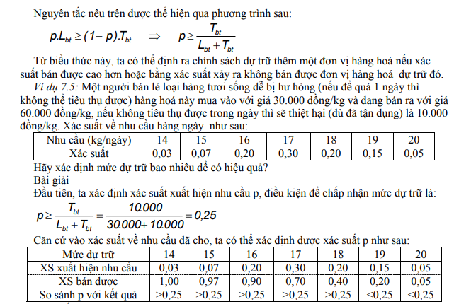 4. Ứng dụng mô hình phân tích biên tế để xác định lượng dự trữ.