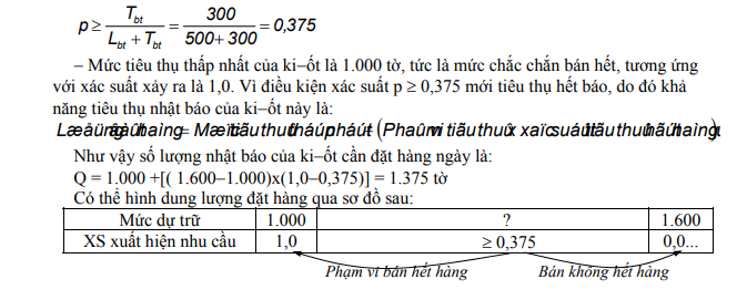 Gọi (p) là xác suất xuất hiện nhu cầu lớn hơn khả năng cung (bán được hàng), nên ta có (1−p) là xác suất xuất hiện nhu cầu nhỏ hơn khả năng cung (không bán được hàng).