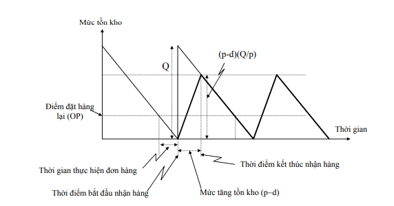 nếu một vật liệu được sản xuất ở một giai đoạn của qui trình sản xuất, tồn trữ trong kho và sau đó gửi qua giai đoạn khác trong sản xuất hay vận chuyển đến khách hàng. Mô hình này cho ta thấy các đơn hàng được sản xuất ở mức đồng nhất (p) trong giai đoạn đầu của chu kỳ tồn kho và được dùng ở mức đồng nhất (d) suốt chu kỳ. Mức gia tăng tồn kho là (p−d) trong sản xuất và không bao giờ đạt mức Q như trong mô hình EOQ.