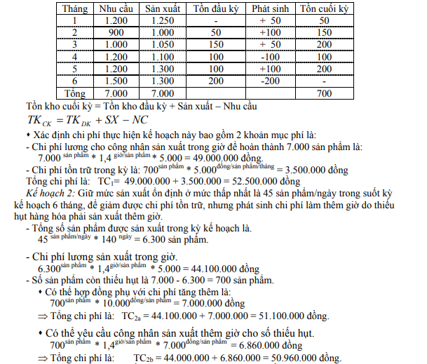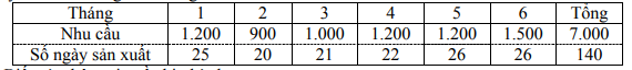 Hãy lập kế hoạch sản xuất để đáp ứng đầy đủ nhu cầu của khách hàng trong 6 tháng tới sao cho tổng chi phí phát sinh là thấp nhất.