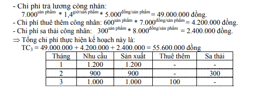 Tương tự như vậy, chúng ta đưa ra càng nhiều kế hoạch thì có khả năng chọn được kế hoạch sản xuất có tổng chi phí thực hiện thấp nhất. Dựa trên kết quả của 3 kế hoạch trên thì ta chọn kế hoạch 2 với giải pháp thứ 2 có tổng chi phí nhỏ nhất là 50.960.000 đồng.