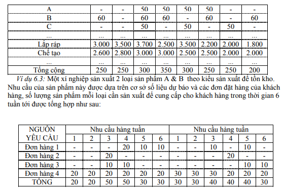 Đối với từng sản phẩm, lấy tổng nhu cầu đối chiếu với tồn kho ban đầu và xác định xem vào tuần lễ nào tồn kho cuối kỳ sẽ xuống dưới mức tồn kho an toàn và như thế yêu cầu phải sản xuất và lập lịch trình cho lô sản phẩm được sản xuất trong tuần đó.