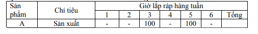 Năng lực sẵn có của dây chuyền là 600 giờ cho 6 tuần lễ và lịch trình sản xuất yêu cầu