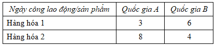 Bảng 1.1: Ví dụ lợi thế tuyệt đối giữa hai quốc gia với hai mặt hàng