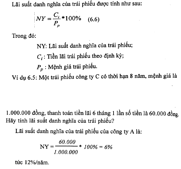 Lãi suất danh nghĩa (Nominal Yield – NY) của trái phiếu là tỷ lệ phần trăm số tiền lãi nhận được theo định kỳ trên mệnh giả trái phiếu.