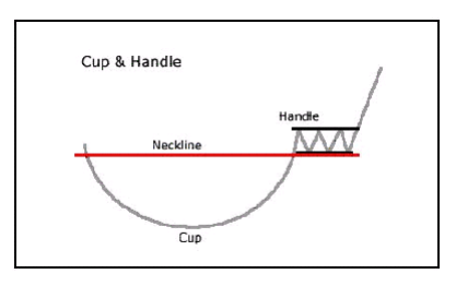 Mô hình cốc và chuôi xuất hiện khi thị trường đang trong xu thế lên giá và nó củng cố xu thế đó của thị trường. Mô hình này gồm hai phần: phần “cốc” và phần cái “chuôi”, mô hình “cốc” kéo dài trong 1 đến 6 tháng còn mô hình chuôi kéo dài trong 1 đến 4 tuần. Phần cốc hình thành sau một đợt tăng giá của thị trường và có dạng đáy vòng xuống. Khi mô hình “cốc” hoàn thành một mô hình khung giao dịch sẽ tiếp tục hình thành ở phía bên phải và tạo nên cái “chuôi” (như hình vẽ).