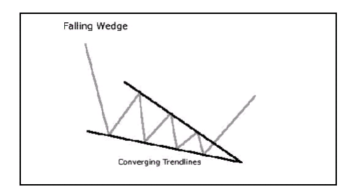 Mô hình Falling wedge là một hình mẫu kỹ thuật dạng bullish (chỉ báo thị trường tăng giá), mô hình bắt đầu thì biên khoảng cách giữa hai đường xu thế rộng sau đó độ rộng giảm dần khi giá chứng khoán giảm. Sự biến động của giá hình thành một hình chóp nón hướng xuống dưới do các đỉnh và đáy dần hội tụ. Hình mẫu kỹ thuật Falling wedge trượt hướng xuống phía dưới và có dấu hiệu bullish (chỉ báo thị trường tăng giá), tuy nhiên dấu hiệu bullish (chỉ báo thị trường tăng giá) này sẽ không thể được nhận ra cho đến khi có “breakout” (đảo chiều xu thế) khỏi đường kháng cự. Khi mô hình mang tính continuation (tiếp tục xu thế của thị trường), thì Falling wedge vẫn sẽ hướng xuống dưới và xu hướng này ngược với xu thế của thị trường hiện tại. Khi nó mang tính reversal (đảo ngược với xu thế của thị trường), thì Falling wedge hướng trượt xuống dưới cùng với xu thế của thị trường.
