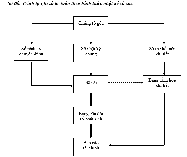 Trình tự ghi sổ theo hình thức nhật kí – sổ cái: hàng ngày khi có nghiệp vụ kinh tế phát sinh, căn cứ vào chứng từ kế toán đã được lập để ghi vào sổ nhật kí-sổ cái, sau đó ghi vào sổ kế toán chi tiết. Cuối kì tổng hợp số liệu của các tài khoản trên sổ nhật kí-sổ cái và bảng tổng hợp chi tiết để lập các báo cáo tài chính.