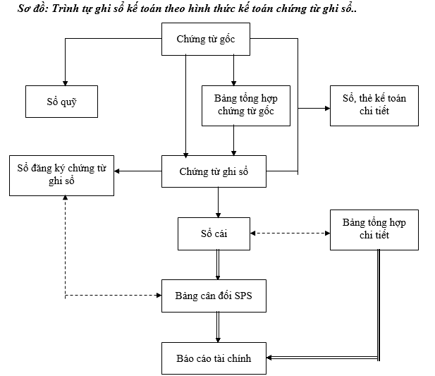 Trình tự kế toán theo hình thức chứng từ ghi sổ: căn cứ vào các chứng từ gốc hoặc bảng kê chứng từ gốc, kế toán lập chứng từ ghi sổ, căn cứ vào chứng từ ghi sổ kế toán ghi sổ đăng kí chứng từ ghi sổ sau đó ghi vào sổ cái. Đối với các đối tượng cần hạch toán chi tiết, kế toán căn cứ chứng từ ghi sổ kem theo chứng từ gốc ghi vào các sổ, thẻ chi tiết.