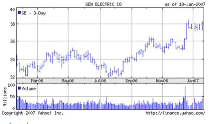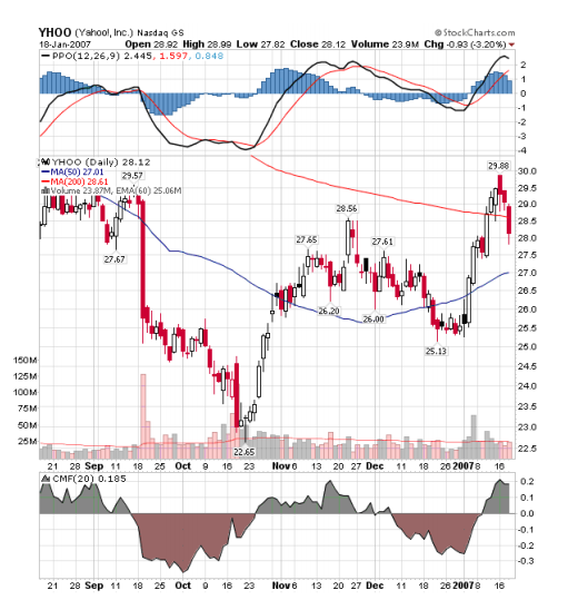 Đồ thị biến động giá của YAHOO, 18/1/2007