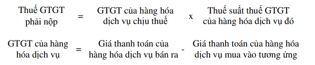 Thuế GTGT = Giá tính thuế x Thuế suất thuế GTGT.