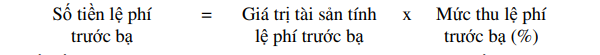 Xác định số tiền lệ phí trước bạ đối với một tài sản căn cứ vào giá trị tài sản trước bạ và mức thu lệ phí trước bạ như sau: