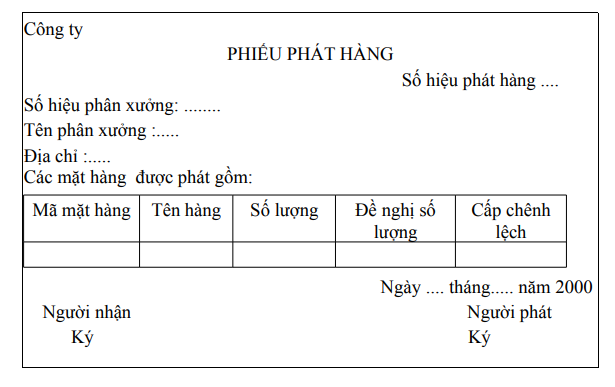 Ví dụ: Một tài liệu xuất của hệ cung ứng vật tư.
