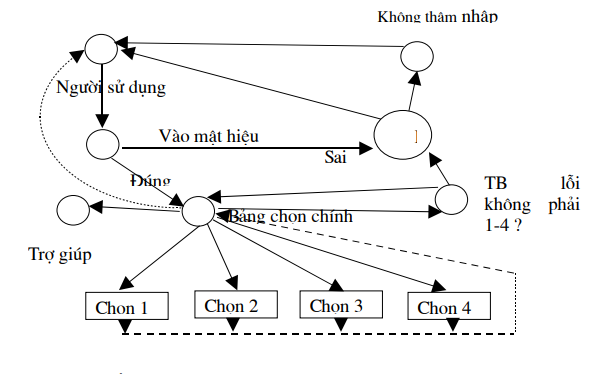 + Các đường nối (thẳng, cong) có hướng nối từng cặp vòng tròn, chỉ ra dòng thông tin trao đổi hay điều kiện thực hiện giữa các hộp thoại