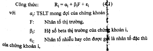 Mô hình đơn giản nhất là mô hình một nhân tố. p đây, nhân tố trong mô hình nhân tổ được xem là nhân tố thị trường,