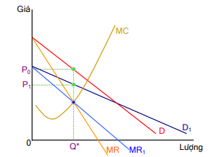 giảm nếu như mức giá cao hơn mức giá Po (MR = MC) này.