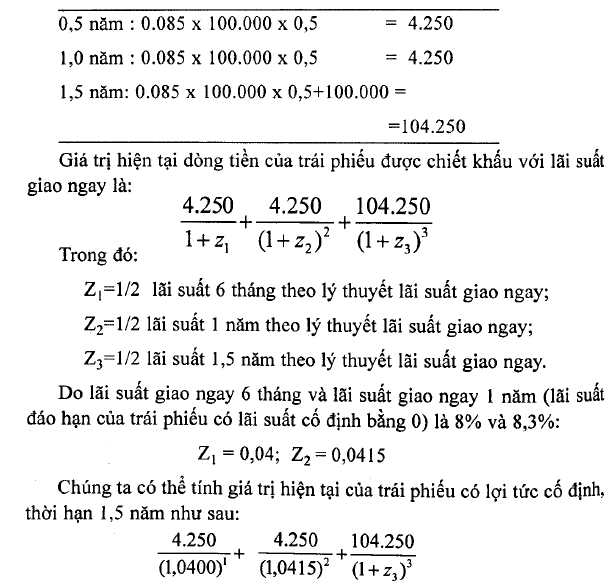 z3 là V2 lãi suất năm của trái phiếu có kỳ hạn 1,5 năm. Do đó, 0,0893 hay 8.93% là lãi suất giao ngay của trái phiếu 1,5 năm. Đây cũng là tỷ suất lợi tức của trái phiếu kho bạc không hưởng lãi.