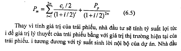 i : Lãi suất đáo hạn của đợt phát hành trái phiếu (hoặc tỷ suất lợi tức yêu cầu cùa thị trường đối với trái phiếu);