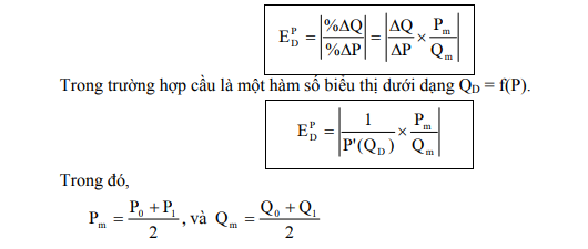 Sử dụng dữ liệu biểu cầu trước đây, chúng ta đo lường độ co giãn đoạn như sau: