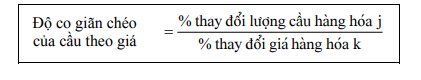 Độ co giãn chéo của cầu theo giá đo lường độ nhạy cảm của sự thay đổi lượng cầu của hàng hóa này theo sự thay đổi giá của hàng hóa khác. Độ co giãn chéo của cầu theo giá giữa hai hàng hóa j và k có thể biểu thị như sau: