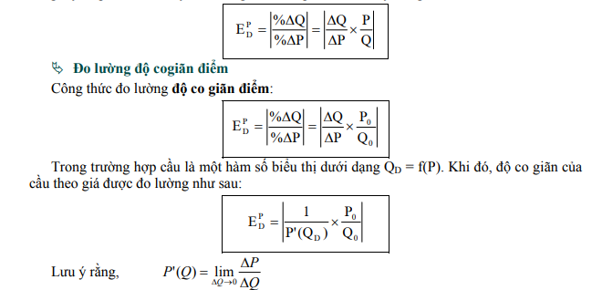 Độ co giãn của cầu theo giá là đo lường thường được sử dụng phổ biến nhất, được xác định bằng “tỷ số phần trăm thay đổi lượng cầu theo phần trăm thay đổi giá”.