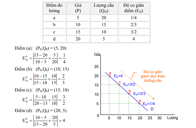 Giả sử, chúng ta đo lường độ co giãn của cầu theo giá từ dữ liệu biểu cầu sau: