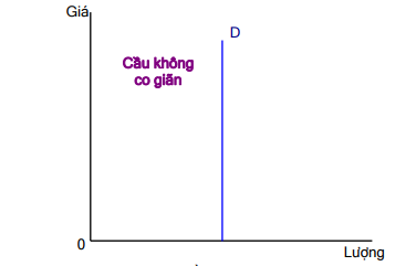 Một trường hợp đặc biệt khác đó là đường cầu dốc đứng, được gọi là cầu không co giãn như biểu thị trong biểu đồ dưới đây. Lưu ý rằng độ co giãn của cầu theo giá là bằng không từ khi lượng cầu không thay đổi theo sự thay đổi của giá. Trong thực tế, chúng ta sẽ không tìm thấy đường cầu không co giãn. Tuy nhiên, trong một khoảng giá nhất định, một số hàng hóa như thuốc điều trị ung thư sẽ có đường cầu không co giãn. Nếu như giá cả vượt quá giới hạn nào đó thì lượng cầu sẽ giảm xuống bởi người tiêu dùng bị giới hạn về ngân sách.
