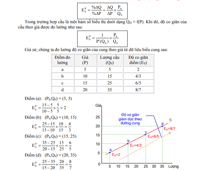 Chúng ta cũng có thể vận dụng đối với khái niệm độ co giãn của cung. Độ co giãn của cung theo giá được xác định bằng “tỷ lệ phần trăm thay đổi lượng cầu theo phần trăm thay đổi giá”.