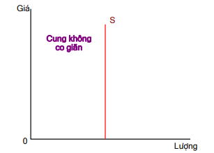 Cung không co giãn sẽ có dạng đường cung thẳng đứng song song với trục tung (như biểu đồ dưới đây). Khi cung không co giãn thì độ co giãn của cung theo giá bằng không, điều này trong thực tế không hẳn hoàn toàn chính xác. Nếu như một ai đó bán một bức tranh Monet là 5 triệu đồng, liệu có bao nhiêu bức tranh sẽ được bán? Thông thường, một hàng hóa có giá tăng lên thì lượng cung sẽ tăng, nhưng đối với tác phẩm nghệ thuật hay hàng hóa quí hiếm thì cung sẽ không co giãn nếu giá vượt qua một ngưỡng nào đó. Đặc biệt đối với hàng hóa dự trữ được như hàng tươi sống thì người bán sẽ cố gắng bán với mọi mức giá có thể vào cuối ngày.