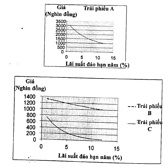Thứ hai, đường cong biểu diễn mối quan hệ giá – lãi suất của các trái phiếu khác nhau sẽ cỏ những điểm khác nhau, phụ thuộc vào đặc điểm của dòng tiền (lãi suất cố định, kỳ hạn).