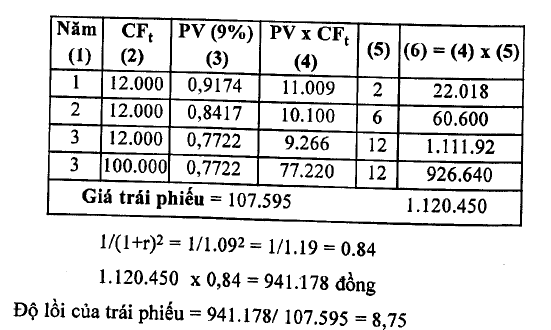Với PV(CF) là giá trị hiện tại của dòng tiền từ trái phiếu.