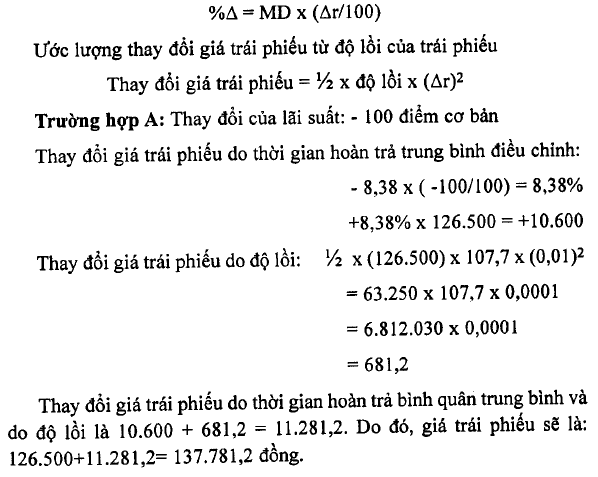 - Thay đổi giá trái phiếu do thời gian hoàn trả trung bình và do độ lồi của trái phiếu: