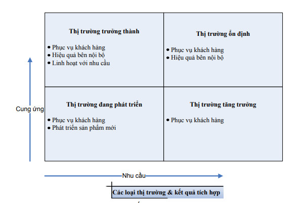 Từ thị trường, có nhiều yêu cầu khác nhau đặt ra cho chuỗi cung ứng. Điều này hình hành nên một khung đo lường hiệu quả bằng cách sử dụng 4 loại số đo trên. Khung này mô tả kết quả tích hợp cần có ở các công ty hay chuỗi cung ứng khi phục vụ 4 loại thị trường khác nhau. Khi công ty xác định các thị trường mà công ty phục vụ thì sau đó sẽ xác định kết quả tích hợp cần có trong các thị trường để đáp ứng tốt nhất những cơ hội mà thị trường đem lại.