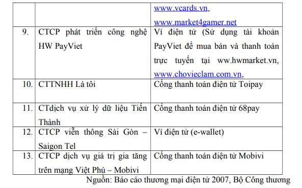 Trước nhu cầu của xã hội, năm 2007 đã chứng kiến những nét chuyển biến lớn của thanh toán điện tử Việt Nam. Ngoài các ngân hàng, nhiều công ty cung cấp dịch vụ, giải pháp cho thanh toán điện tử ra đời. Báo cáo này tập trung giới thiệu các mô hình cung cấp dịch vụ thanh toán điện tử và việc triển khai của một số doanh nghiệp điển hình.