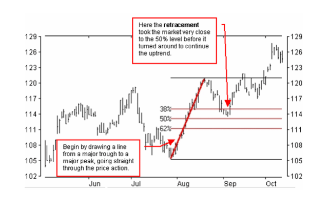 Sau khi giá cổ phiếu duy trì chuyển động bền vững theo một hướng nhất định (tăng hoặc giảm), giá cổ phiếu có thể truy hồi một khoảng (retrace= quay trở lại) trước khi bắt đầu di chuyển tiếp. Chỉ số Fibonacci được dùng để dự đoán các mức giá hỗ trợ (support level) và các mức giá tương lai (target prices) dựa trên khoảng cách mà giá đã dịch chuyển và các bước sóng của giá (ware patten).