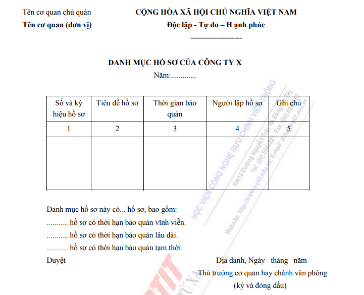 Cách làm: Danh mục hồ sơ làm vào tháng cuối năm để thực hiện từ đầu năm mới.