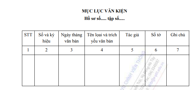 -Đánh số tờ, ghi mục lục văn kiện. Tờ mục lục văn bản có tác dụng thống kê các văn bản, tài liệu trong hồ sơ phục vụ việc tra tìm và bảo quản hồ sơ. Tờ mục lục hồ sơ được in sẳn theo mẫu thống nhất.