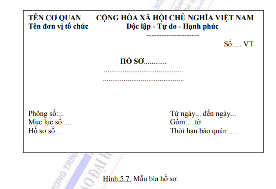 Bìa hồ sơ được in theo mẫu thống nhất. Chữ viết bìa phải đẹp, rõ, dễ đọc. Những thành phần ghi trên bìa phải chính xác.