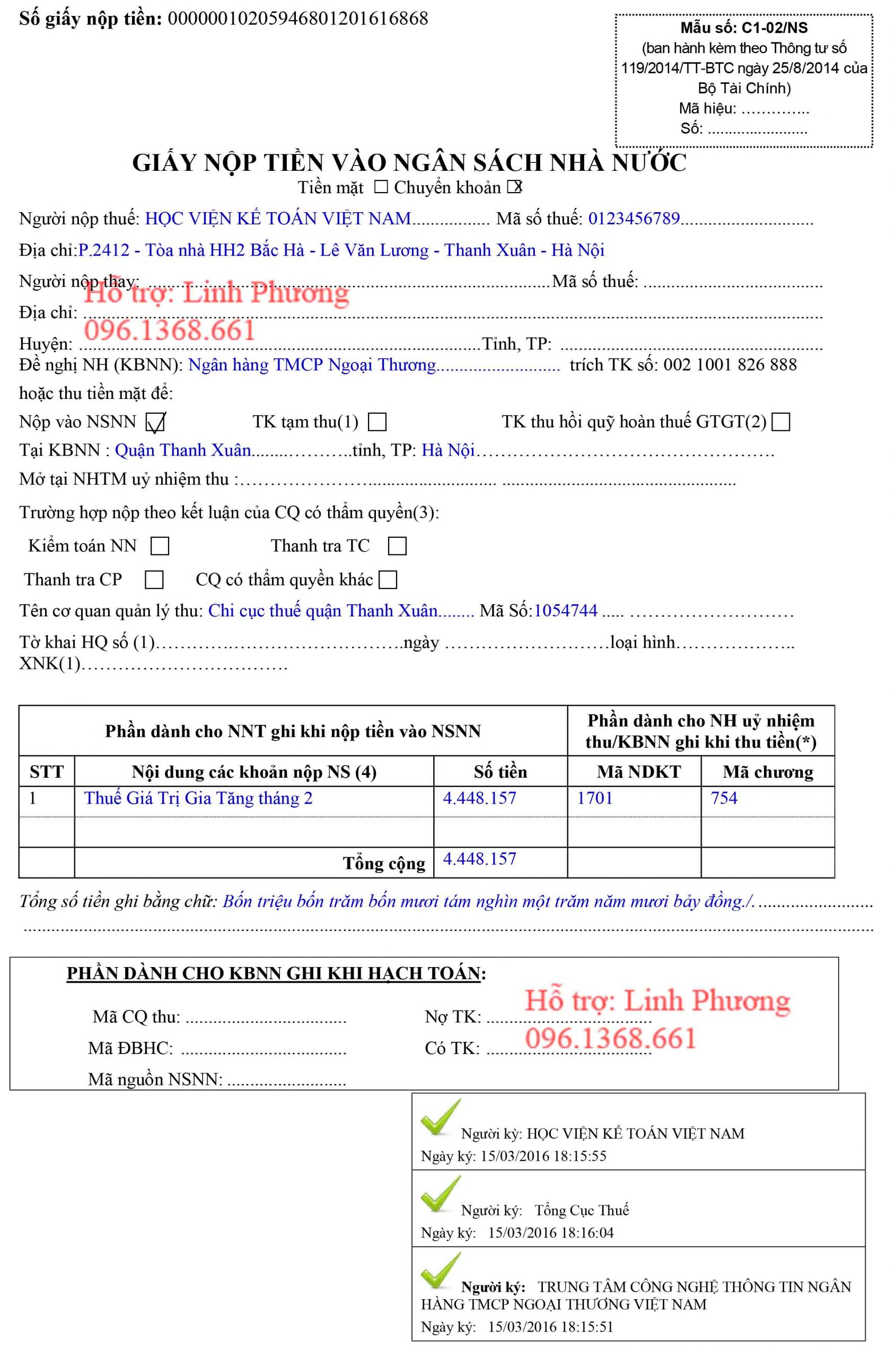 | 1 | 01/GTGT – Tờ khai thuế giá trị gia tăng (GTGT) | Q1/2018 | Nộp tiền thuế GTGT quý 1/2018 | 500.000 | 754 | 1701 | |
