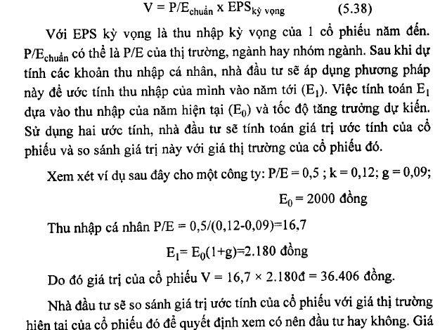 trị ước tính này còn gọi là “tiến trình 2 bước” vì phương pháp này yêu cầu nhà đầu tư phải ước tính thu nhập tương lai Eị và tỷ số P/E dựa trên nhân tố k và nhân tố g.