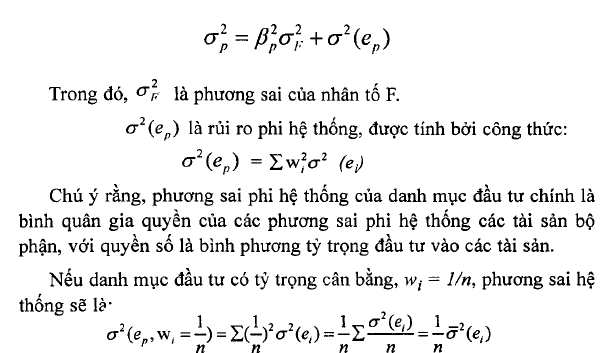 Trong trường hợp này, chúng ta chia phương sai bình quân phi hệ thống cho n. Do đó, khi danh mục đầu tư được mở rộng (n lớn) và tỷ trọng các cổ phiếu bằng nhau, thì phương sai phi hệ thống sẽ gần bằng 0.