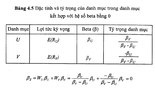 Giả sử rằng hai danh mục được đa dạng hóa hiệu quả được kết hợp với nhau thành một danh mục z có hệ số ß bằng 0. Tất nhiên các tông các quyền số của hai tài sản trong danh mục z bằng 1, và hệ sô ß của danh mục là 0.