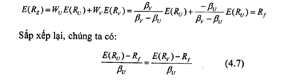 Danh mục z là danh mục phi rủi ro. Nó không tiềm ẩn rủi ro phi hệ thống bởi vì đã được đa dạng hóa hiệu quả, và cũng không tồn tại rủi ro hệ thống bởi vì hệ số ß bằng 0. Khi đỏ, nếu không tồn tại cơ hội kinh doanh chênh lệch giá, lợi tức của danh mục phải là lợi tức phi rủi ro. Vì vậy: