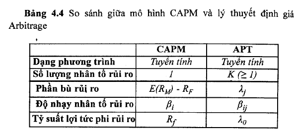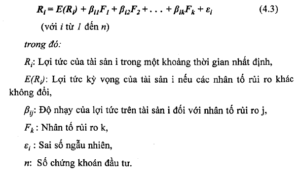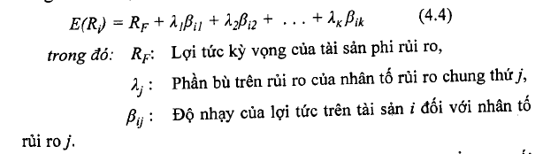 - Các tỷ suất lợi tức có thể được mô tả bằng một mô hình nhân tố, và quá trình hình thành tỷ suất lợi tức của tài sản có thể được biểu diễn bởi một hàm tuyến tính được xác lập từ K nhân tố rủi ro.