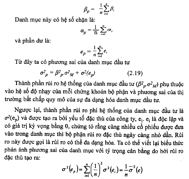ở đây, ỡ2(e) là giá trị trung bình của phương sai, phản ánh rủi ro đặc thù của công ty. Vì mức trung bỉnh này không phụ thuộc vào n, khi n tăng thì ơ2(ep) càng nhỏ.