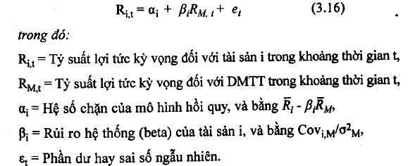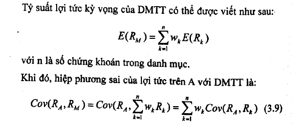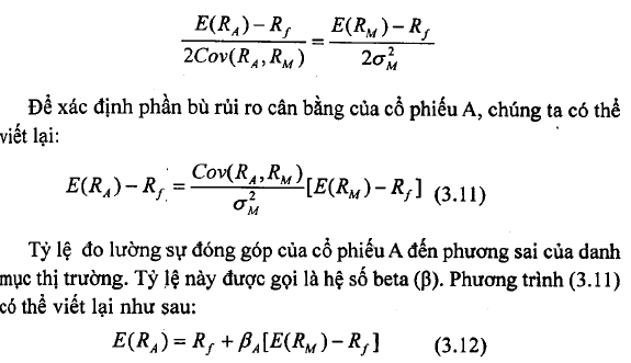 Phương trình (3.12) chỉ rõ mối quan hệ giữa lợi tức kỳ vọng và hệ số beta.