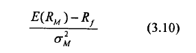 Chúng ta khẳng định dễ dàng rằng phần bù rủi ro của danh mục thị trường, Eịr^ỷ – rf, sẽ tỷ lệ với hệ số ngại rủi ro của nhà đầu tư cũng như rủi ro của DMTT, o2ỵ.