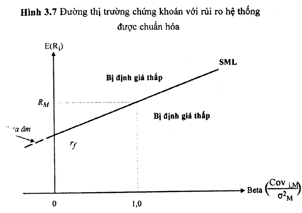 Bời vỉ SML mô phỏng mối quan hệ giữa tỷ suất lợi tức kỳ vọng – hệ số beta, các chứng khoán định giá đủng phải nằm trên đường SML. Các chứng khoán được định giá thấp sỗ cung cấp tỷ suất lợi tức vượt quá (ỷ suất lợi tức kỳ vọng, và do đó, nằm cao hơn đường SML. Ngược lại, các chứng khoán được định giá cao sẽ nằm dưới đường SML. Chênh lệch giữa tỷ suất lợi tức kỳ vọng thực tể và tỷ sụất lợi tức kỳ vọng danh nghĩa cùa một chứng khoán được gọi là hệ số a (alpha) của chứng khoán.