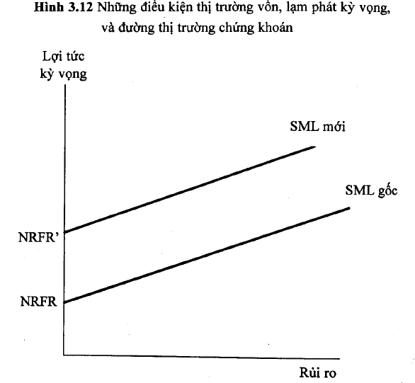 Hình 3.12 chi ra những sự biến đổi của đường SML khi có sự thay đổi một trong những yếu tố sau: (1) sự tăng trưởng thực trong nền kinh tế, (2) những điều kiện thị trường vốn, hoặc (3) tỷ lệ lạm phát kỳ vọng. Chẳng hạn, một sự tăng len của tỷ lệ tăng trưởng, sự thắt chặt tín dụng tạm thời trong thị trường vốn, hoặc một sự gia tăng tỷ lệ lạm phát kỳ vọng sẽ làm cho đường SML mới di chuyển song song với đường SML gốc. Sự di chuyển song song xảy rá bởi vì những thay đổi ở trên ảnh hưởng lên tất cả các cơ hội đầu tư, bất kể mức rủi ro của chúng như thế nào.