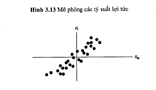 Phương trình 3.16 là đường hồi quy của những sự kết hợp tổt nhất thông qua hệ trục tọa độ tỷ suất lợi tức giữa một bên là một tài sản đơn và một bên ỉà danh mục thị trường của những tài sân rủi ro trong khoảng thời gian quá khứ (xem Hình 3.13).